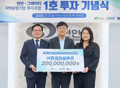 [천안시 24시] 천안시, ‘인세라솔루션’에 2억원 투자...지역 유망기업 1호 선정